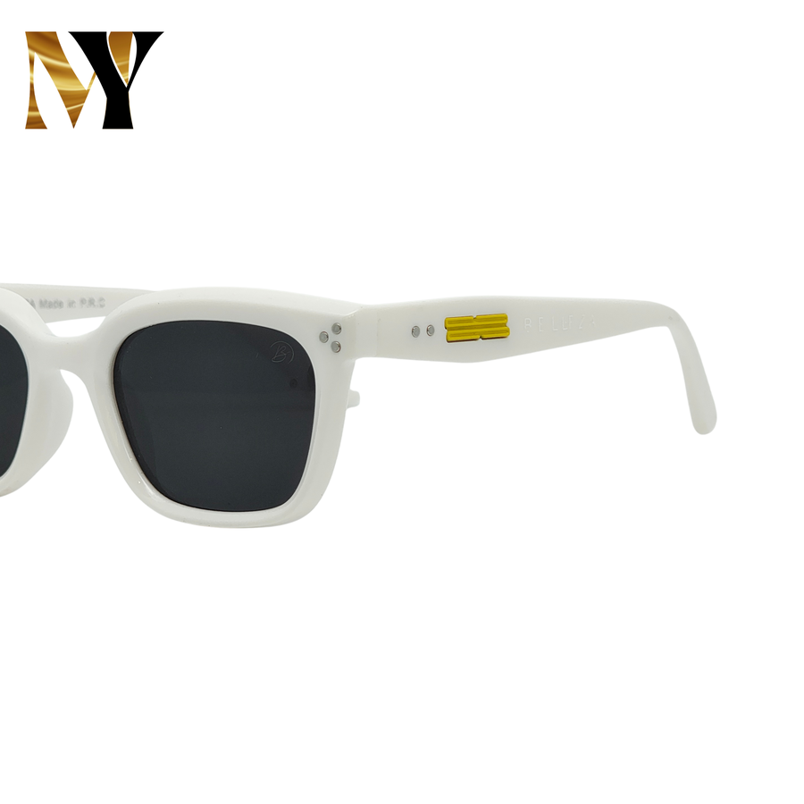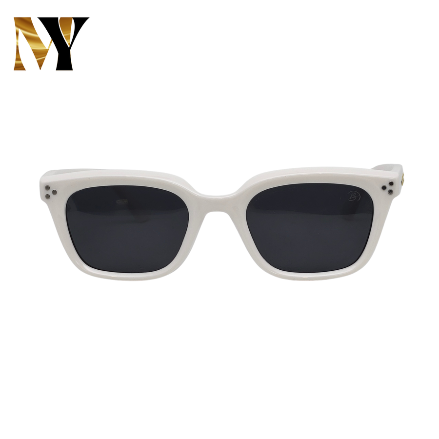 - التصميم: فريم أبيض عريض "تريندي" جداً مع عدسات سوداء بتحمي من الشمس UV400.